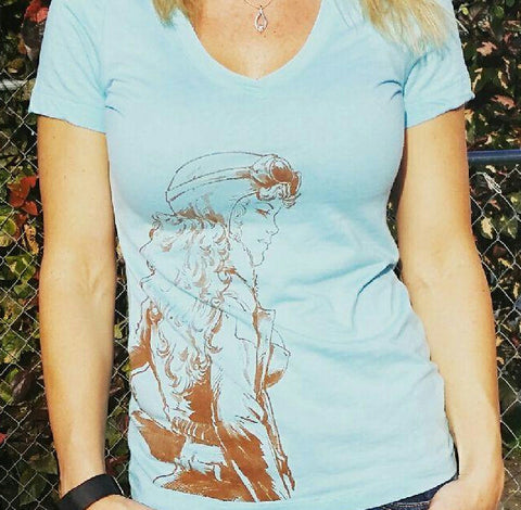 Printed V-Neck T-shirt - 60% Cotton/40% Poly - Cancun Blue