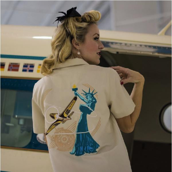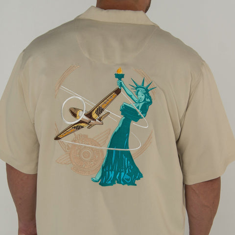 Full Color embroidered Air Racing Theme embroidered high quality camp shirt.