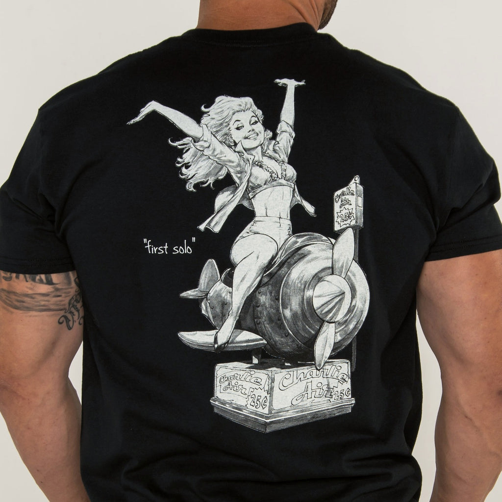Black T shirt 100% Cotton - Charlie Air " First Solo"
